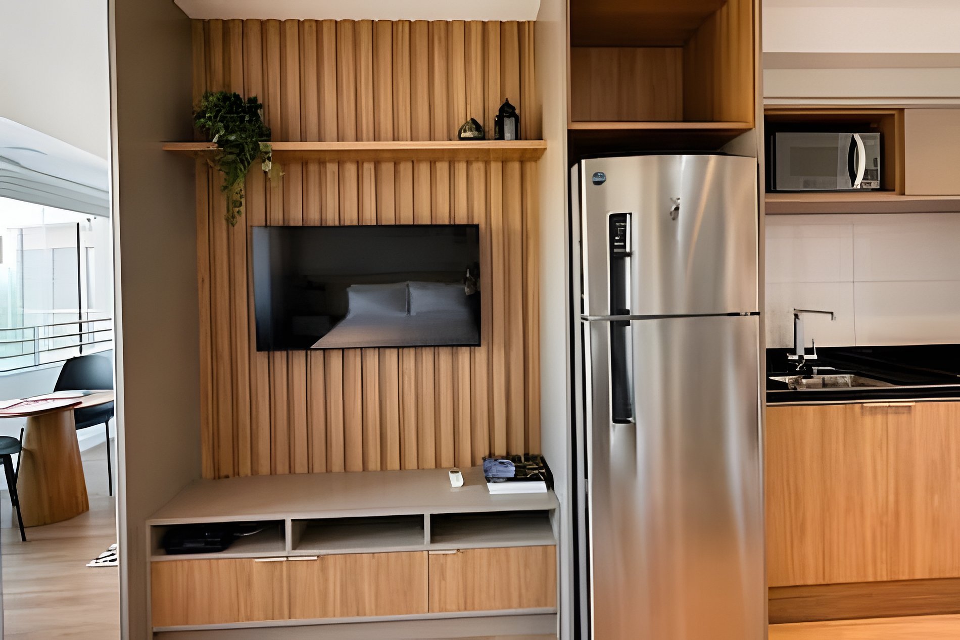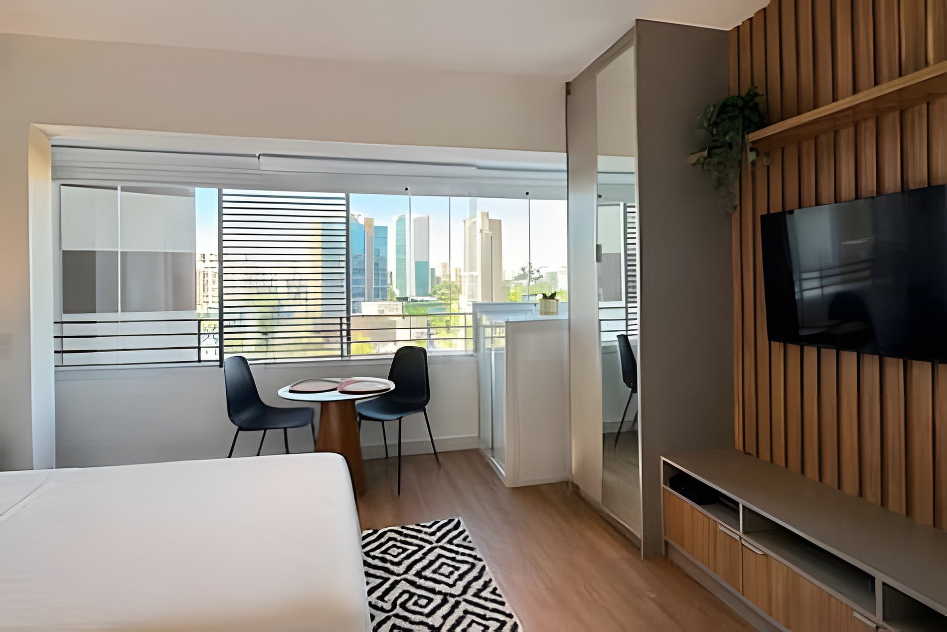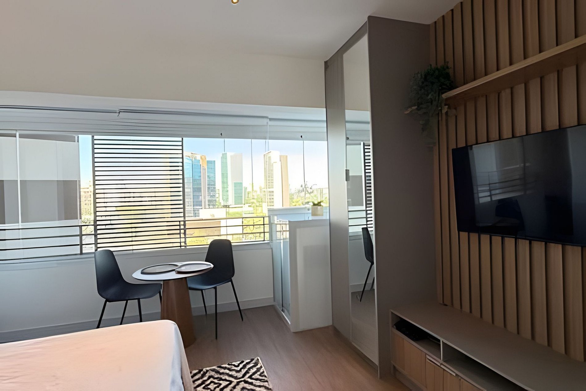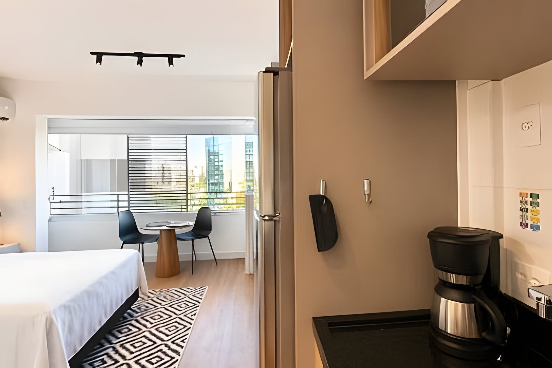 Studio moderno, confortável e bem equipado, ideal para quem busca praticidade em São Paulo. Conta com cama aconchegante, ar-condicionado e ambiente iluminado, perfeito para relaxar ou trabalhar. Cozinha completa com utensílios, geladeira, micro-ondas e cafeteira. Banheiro funcional com toalhas macias. O condomínio oferece academia, lavanderia e ótimas áreas comuns, garantindo uma estadia prática, agradável e com toda a comodidade.